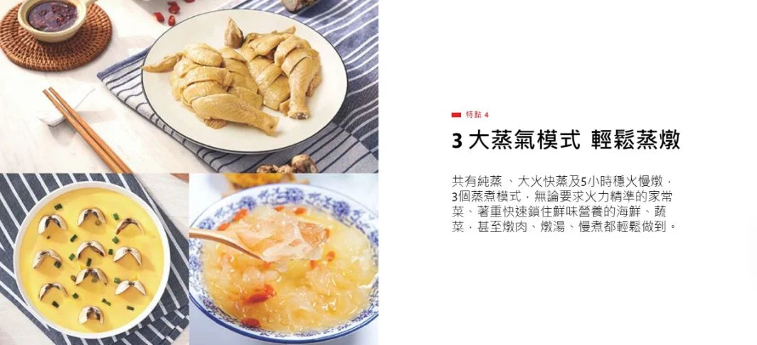 Supports steam, air fry, convection baking, stewing, steam-bake, and fermentation for a wide range of recipes.
