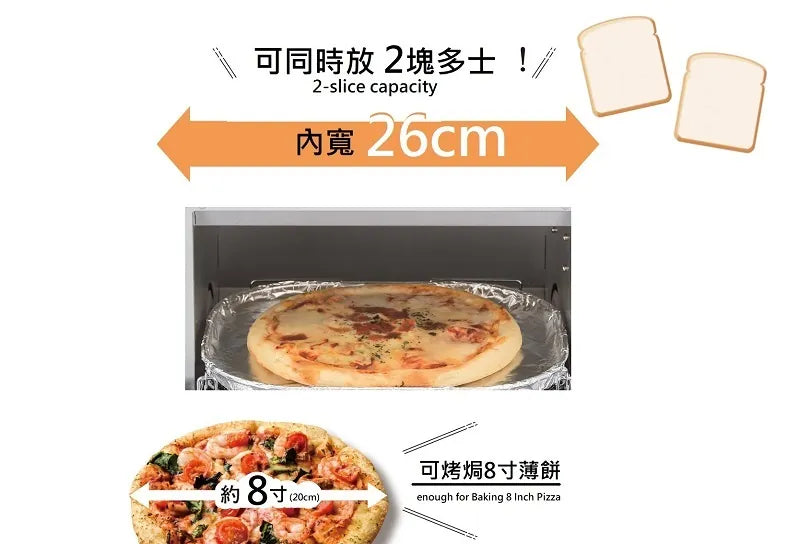 – Double-Layer Glass Door | 15-Min Timer | 8” Pizza Capacity | Easy-Clean Design | 850W