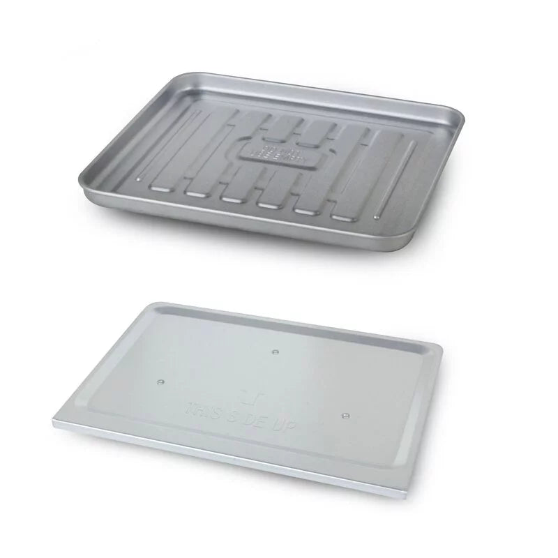 Slide-out tray collects crumbs and grease for hassle-free cleanup.