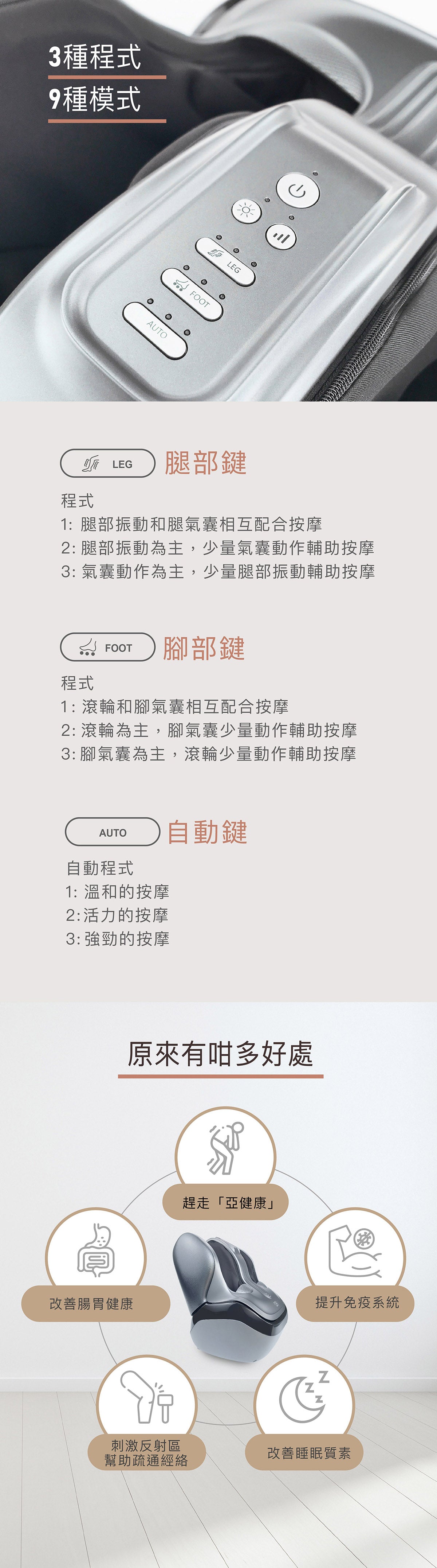 – Deep kneading, tapping & heat therapy for feet and calves – perfect for active lifestyles