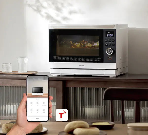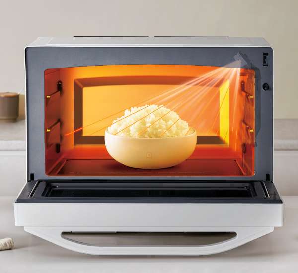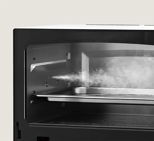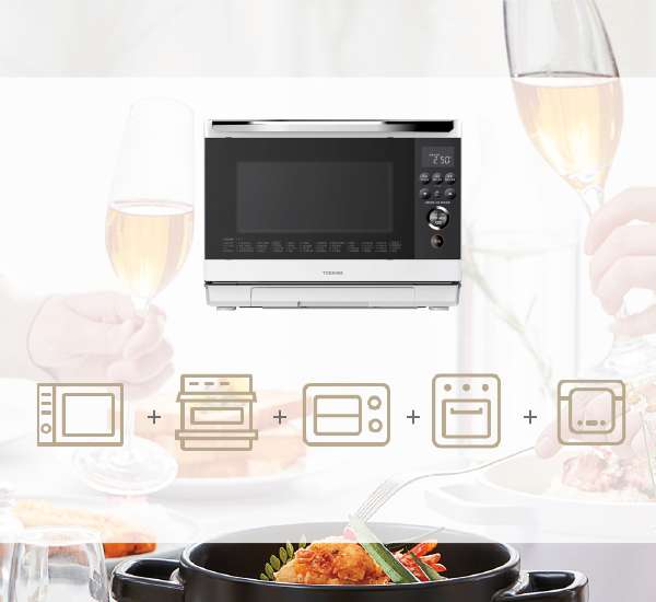 Superheated Steam, Microwave, Bake (3 types), Steam, Stew, Fermentation, Defrost/Reheat — all-in-one compact unit saves valuable kitchen space.