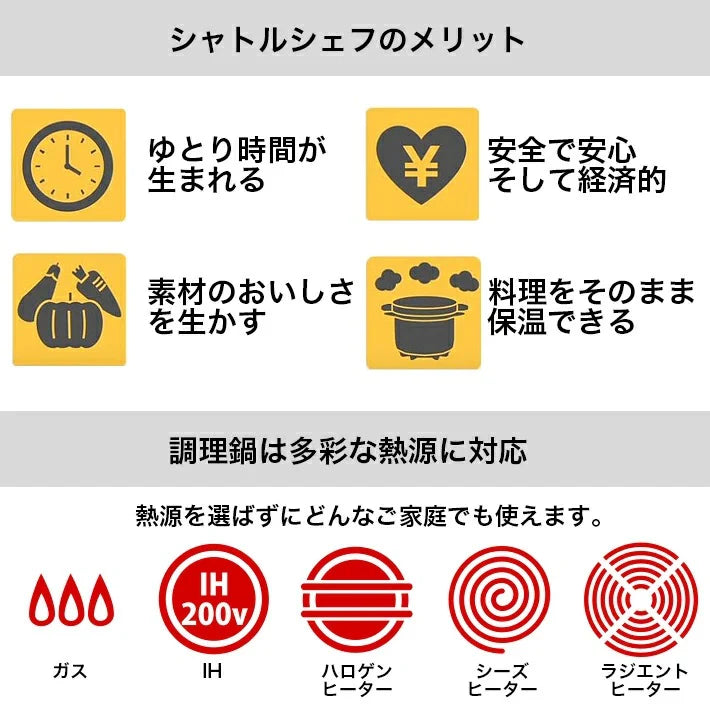 Inner pot is made of durable stainless steel and compatible with open flame or IH 200V induction cooktops.
